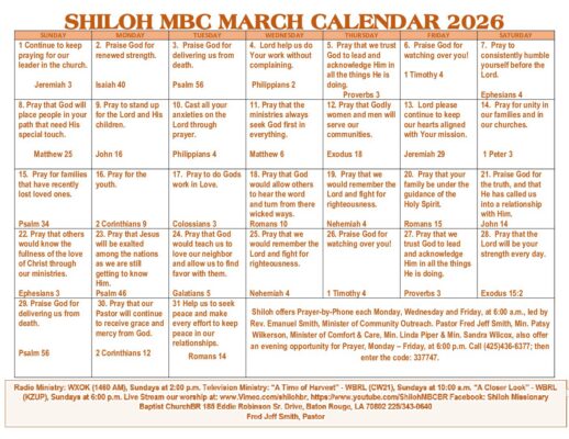 MARCH 2026 PRAYER CALENDAR